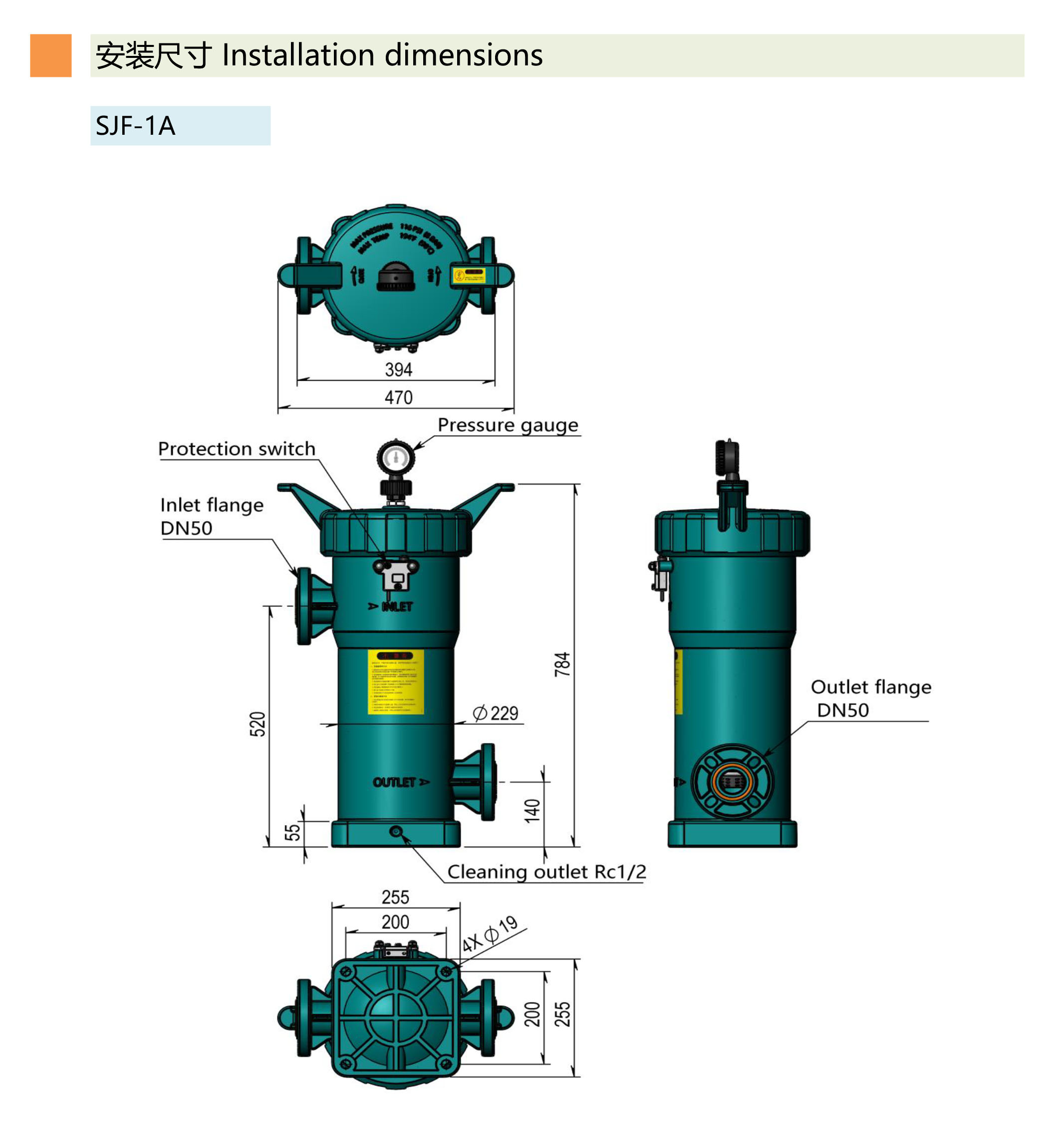 ●进出水口采用法兰式连接,坚固耐用,可配各国标准管道法兰使用。