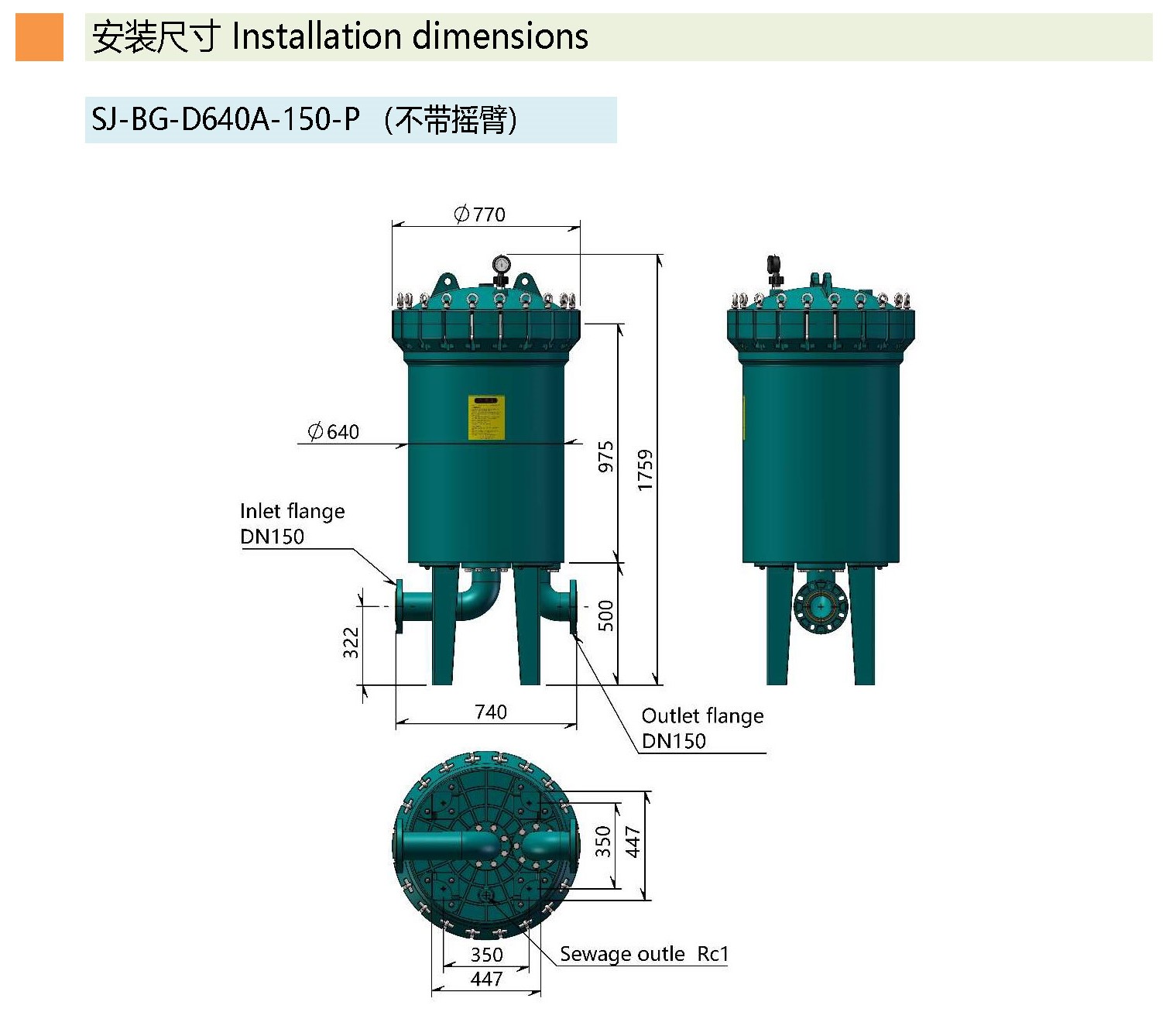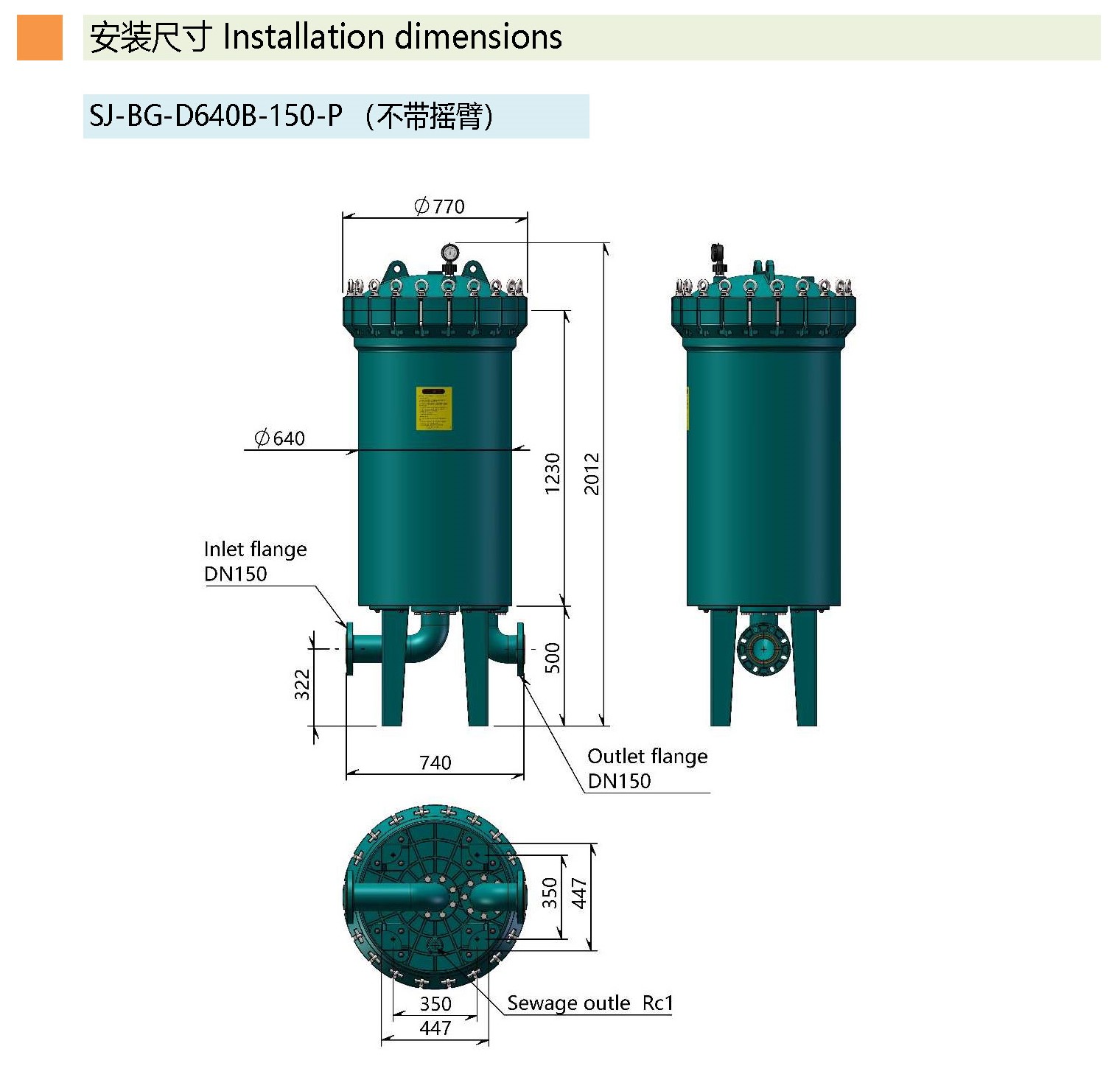 PPH多袋式过滤器SJ-BG-D640-100-P(不带旋臂)