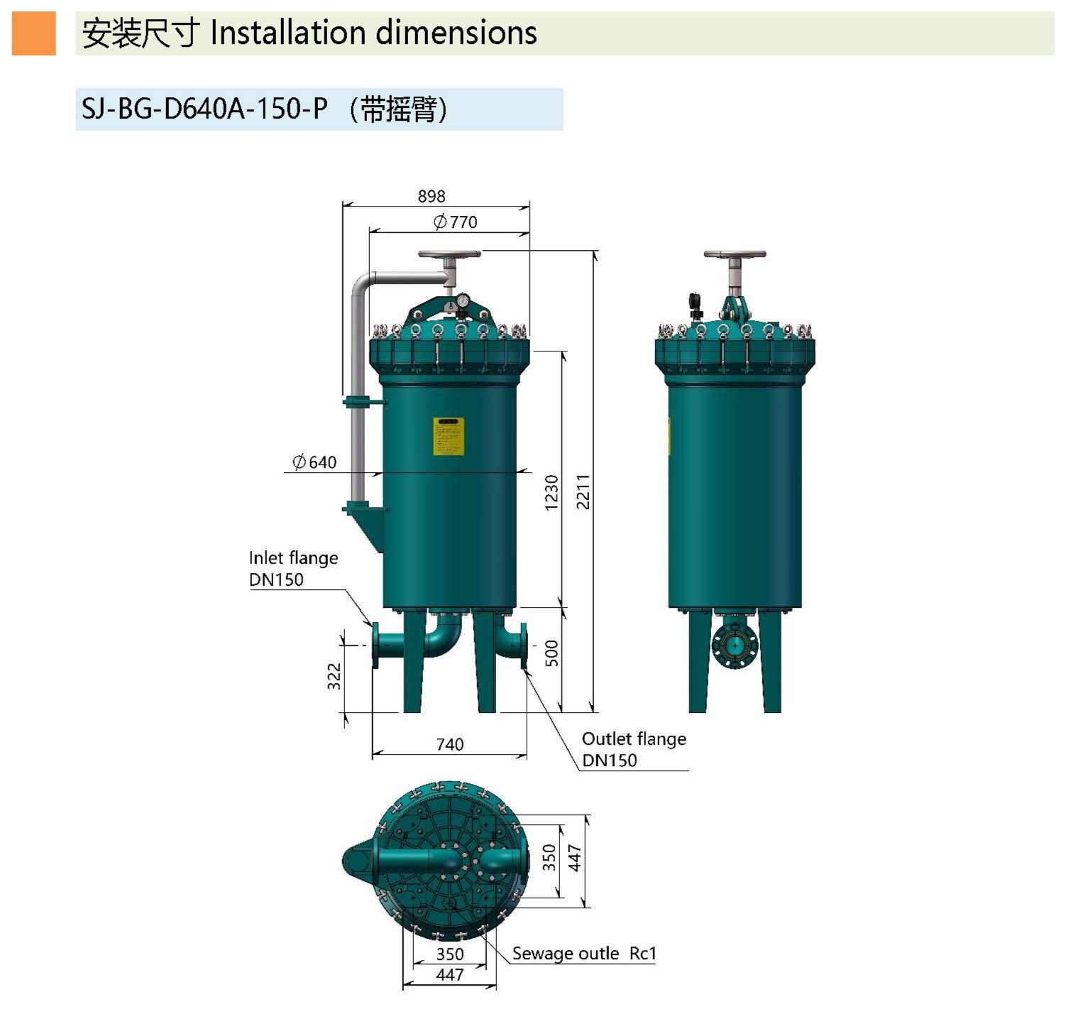PPH多袋式过滤器SJ-BG-D640-100-P(带旋臂)